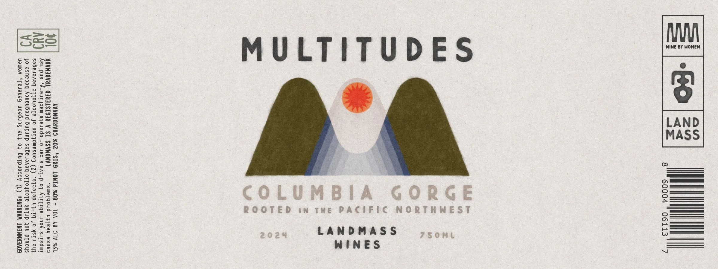 Multitudes now displays a darker, bolder title as well as a darker call out of Landmass Wines on the bottom.